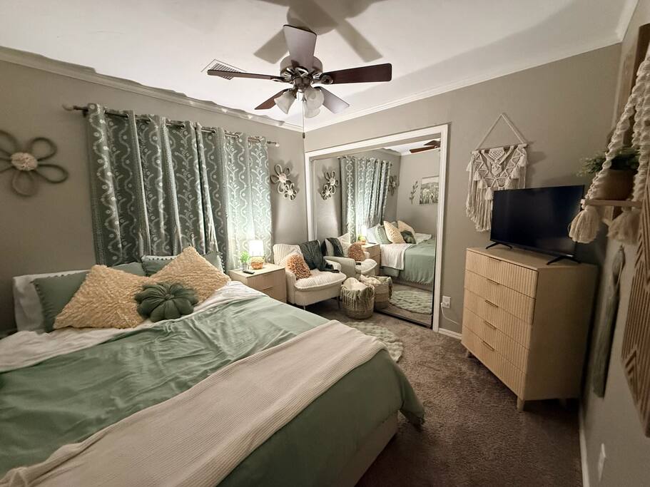 Guest Access Guests will have full access to the entire home during their stay — including all four bedrooms, two living spaces, the fully equipped kitchen, laundry room, and fenced backyard. You’ll also enjoy: • Private driveway parking for multiple vehicles • Game room with arcade machines • Smart TVs in several rooms for easy streaming • Direct park access through the backyard gate (perfect for walks, kids, or pets) Smart lock entry makes check-in seamless — no need to meet in person. Simply arrive, unpack, and start relaxing.