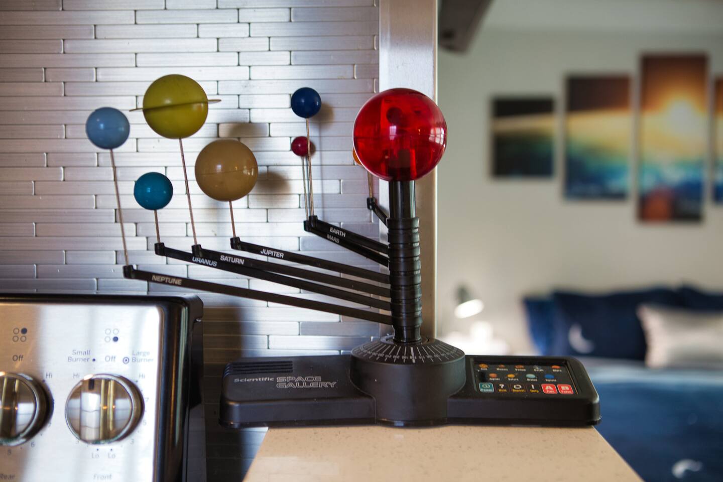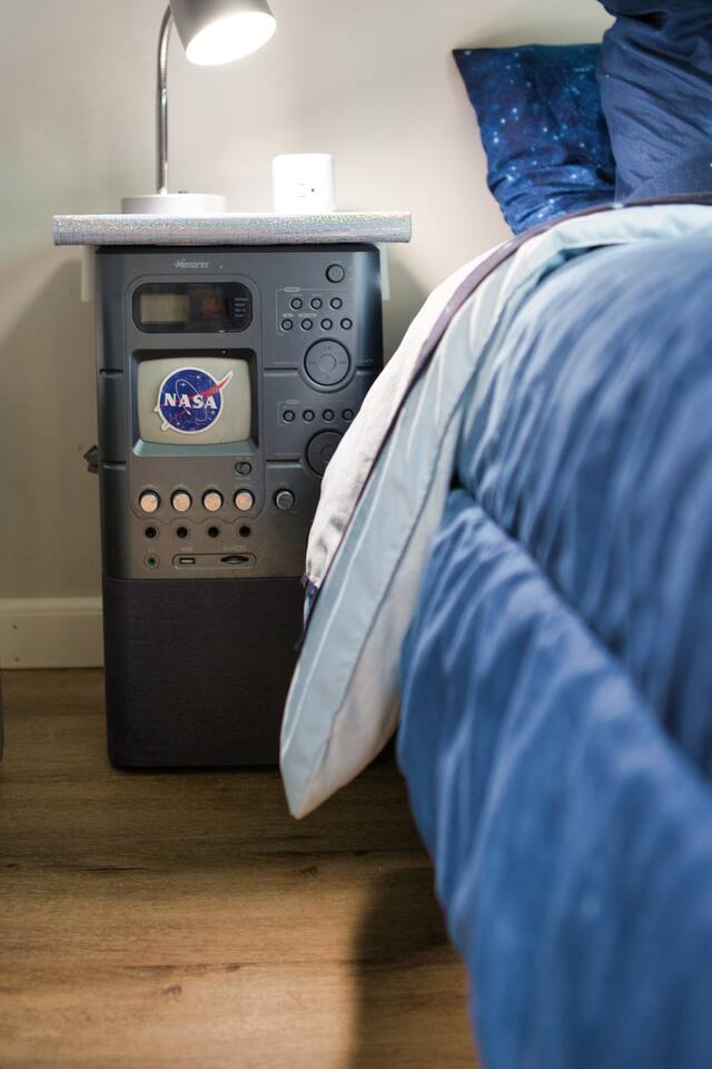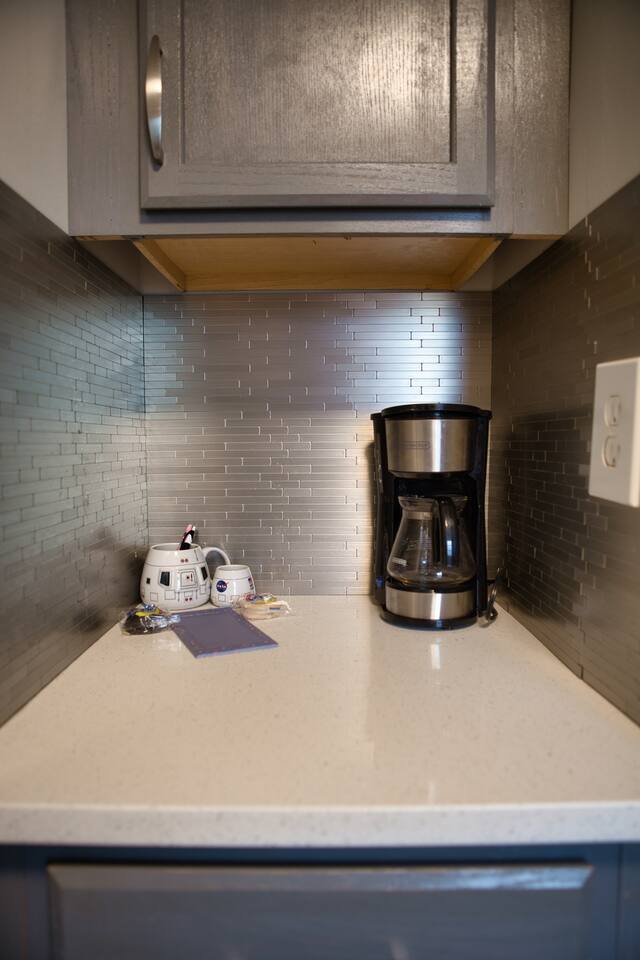 It is a Fun and Inspiring unit with a Space theme. It is an Open Studio layout with full kitchen, living room and bedroom all together. There is a bathroom and closet area that are separated with sliding door. Its less than half a mile to the BOK center and even closer to the Cox center. You can get to entertainment area of downtown very quickly. The area is safe and there is plenty of free parking in front. It is well lit. There is great attention to every detail.