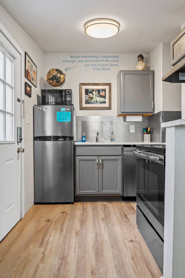 The Space Pod has such a fun feel and theme. We want to give our guests an inspiring experience of Space. This apartment is located at the back of another Air BnB. Washer/Dryer Fully stocked kitchen Queen/sofa bed πΆ Pets YES π400sq ft β 2 minutes from BOK/Cox Center β 6 minutes from Cainβs Ballroom β 7 minutes from Cherry Street β 12 minutes from Jenks Aquarium β 12 minutes from The Gathering Place β 10 minutes from the Expo Center β 7 minutes from TU We are available for questions anytime