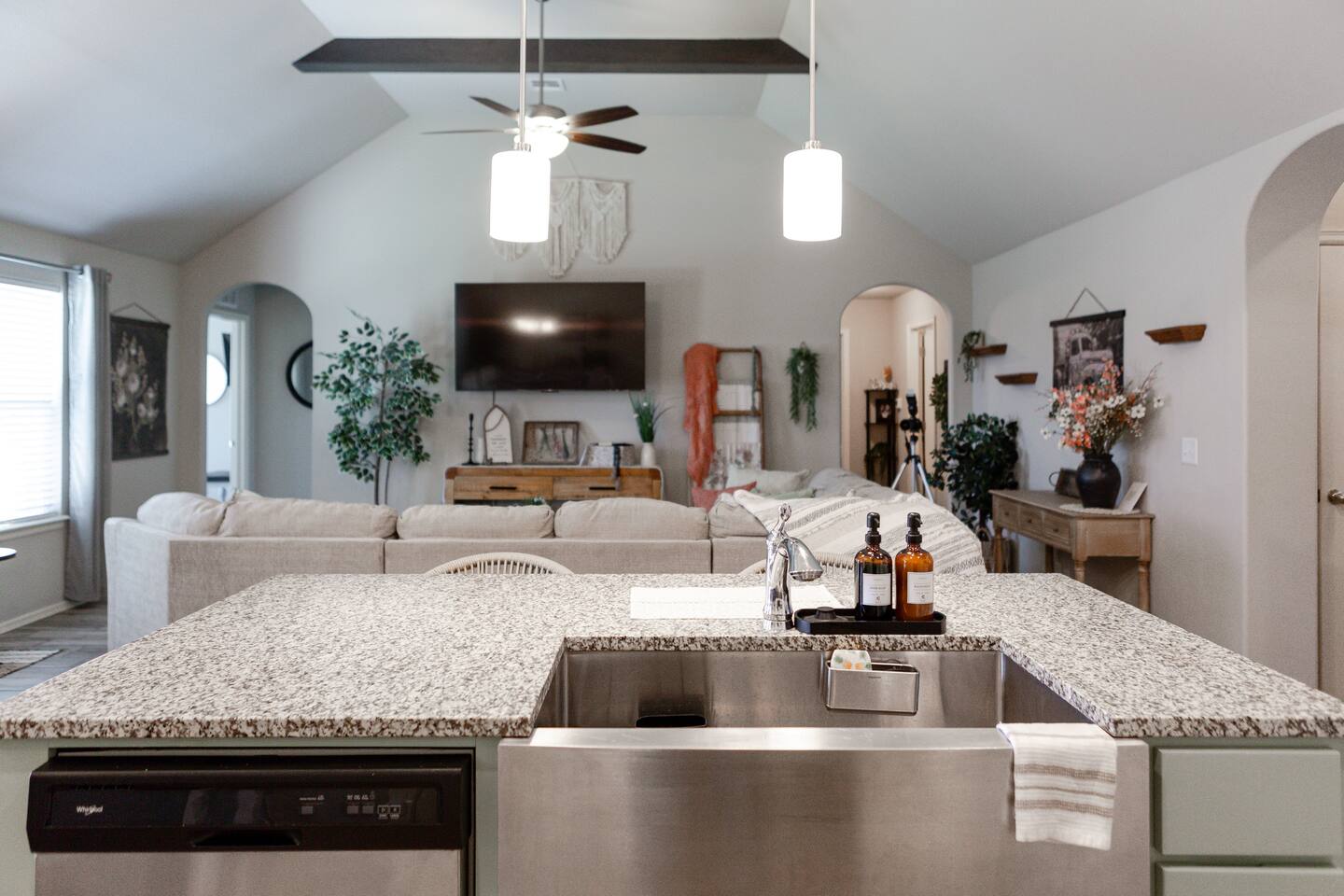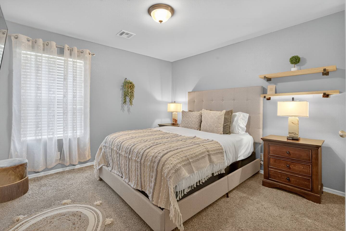 🏡 The Home: • 4 comfortable bedrooms with cozy beds and fresh linens • 2 full bathrooms stocked with essentials • Fully equipped kitchen for home-cooked meals • Open living space with smart TV and plenty of seating 💦 Endless Outdoor Fun: • Splash pad – perfect for kids to cool off and play! • Access to a resort-style community pool just steps away • Catch-and-release fishing pond – we even provide the fishing poles! Spend the afternoon relaxing by the water with family fun built right in. 🎣 What’s Included: • Fishing poles for guest use • Fast WiFi, smart TVs, and family games • Washer & dryer for added convenience 🌟 Why Guests Love It: • Family-friendly features from the splash pad to the pond • Safe, quiet community with great amenities Whether you’re looking for a relaxing escape or an adventure-filled family vacation, this home has it all. Book your stay and make unforgettable memories — from fishing at sunrise to splash pad giggles at sunset!