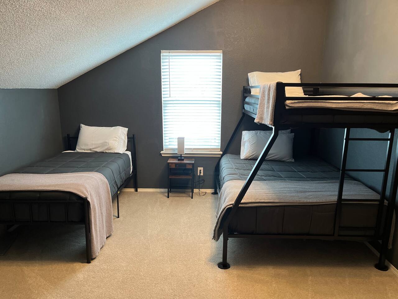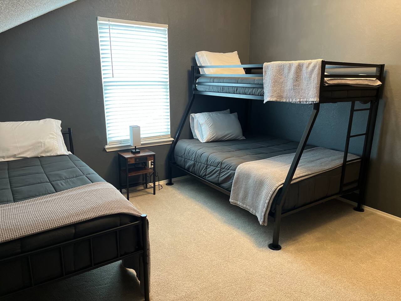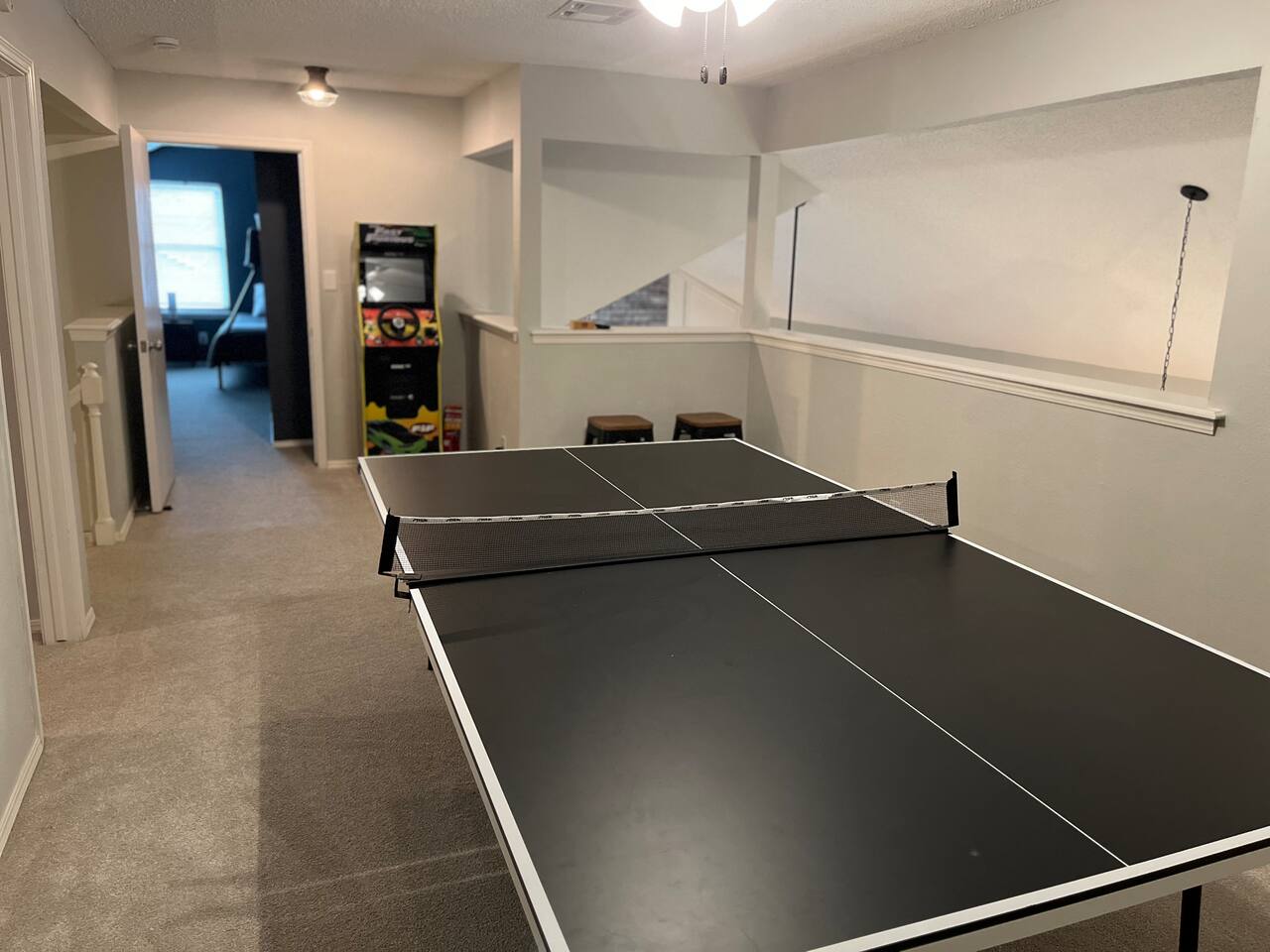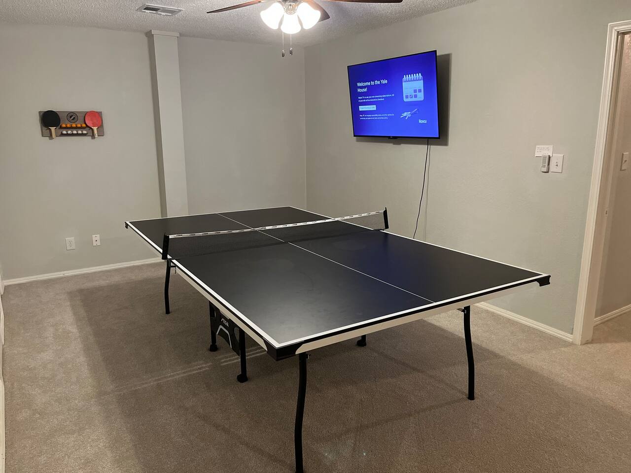 Welcome to the Yale House! Unwind in the cozy living room with a grand fireplace and TV. Enjoy meals with family in our open dining room & fully equipped kitchen. The spacious master bedroom includes a newly renovated master bathroom with luxurious features. Have fun upstairs with a ping pong table & two bedrooms that house a queen-size bed, a bunk bed, and a twin-size bed. Our enclosed backyard provides a safe haven for pets. This is also a home away from home for your fury family member with toys to play away with. Join us at the Yale House, where your home away from home awaits!